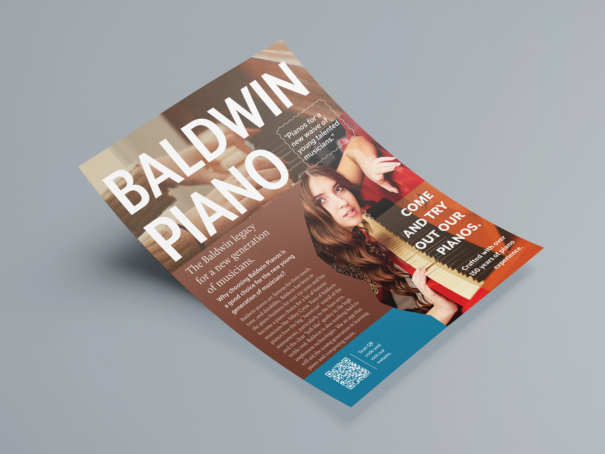 Goal: The goal was to design promotional content that would help Baldwin Piano sell pianos to a younger generation of piano musicians. I was tasked with designing A magazine ad, and two social media posts that would kick start Baldwins Piano’s social media presence.